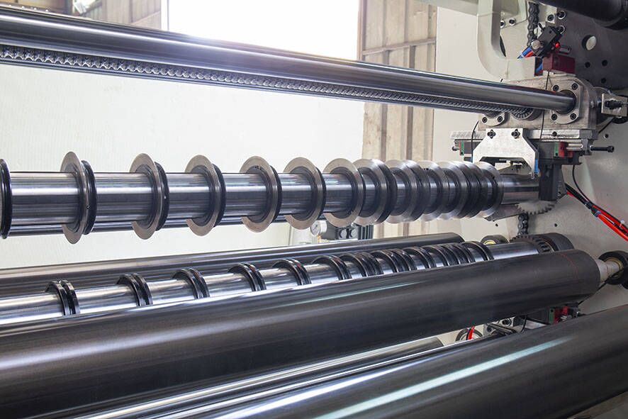 材料在不穩定的狀態下,也就是在其經過分切機兩輥之間時,剃刀落下會將材料縱向切開。但這樣的方式分切精度略有欠缺,適合很薄的塑料膜和復合膜。